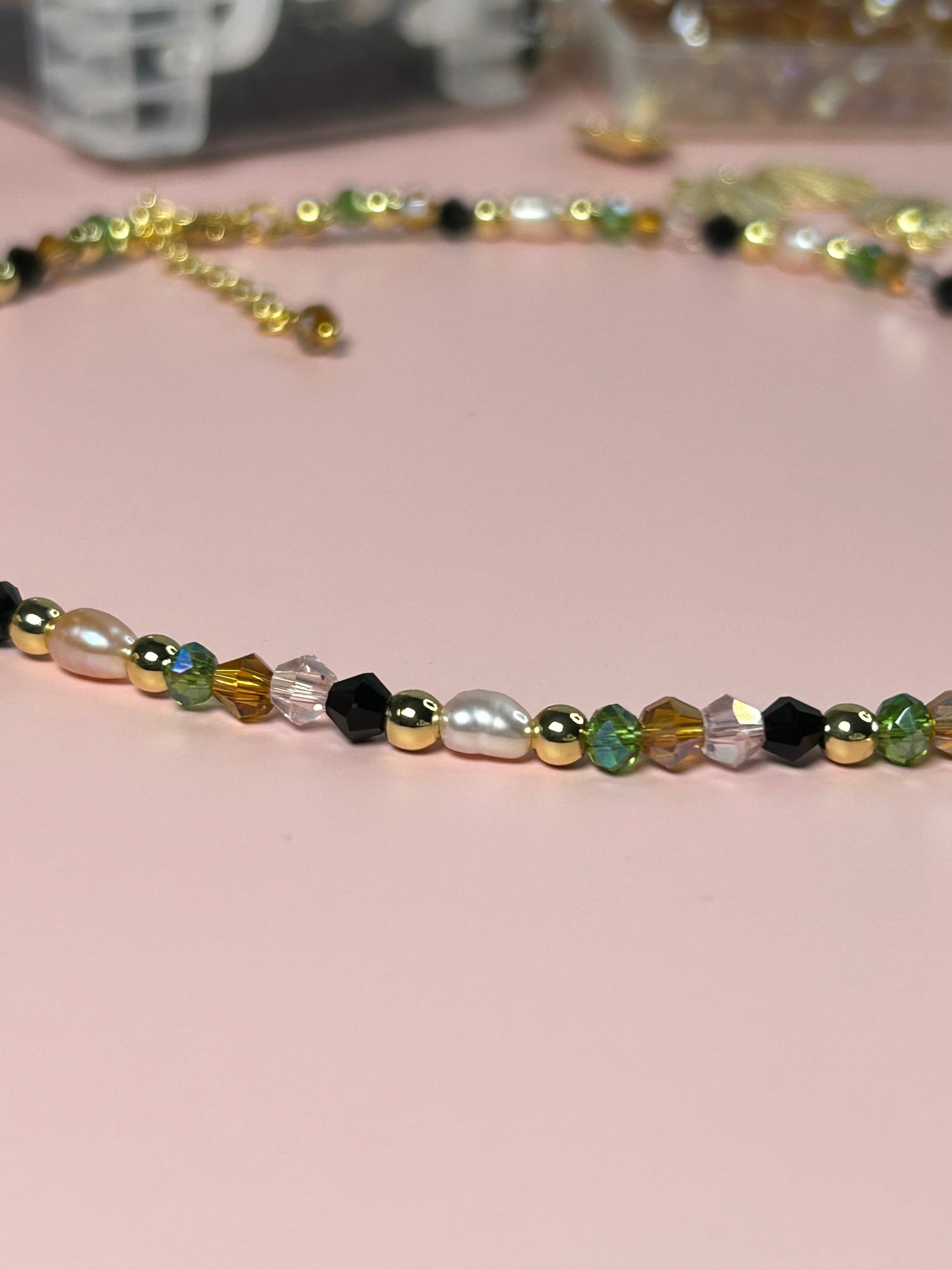 * Elegant Design: This necklace features freshwater pearls and crystal beads, creating a stunning contrast. The handcrafted design adds a unique touch to any outfit. Perfect for special occasions or everyday wear.
