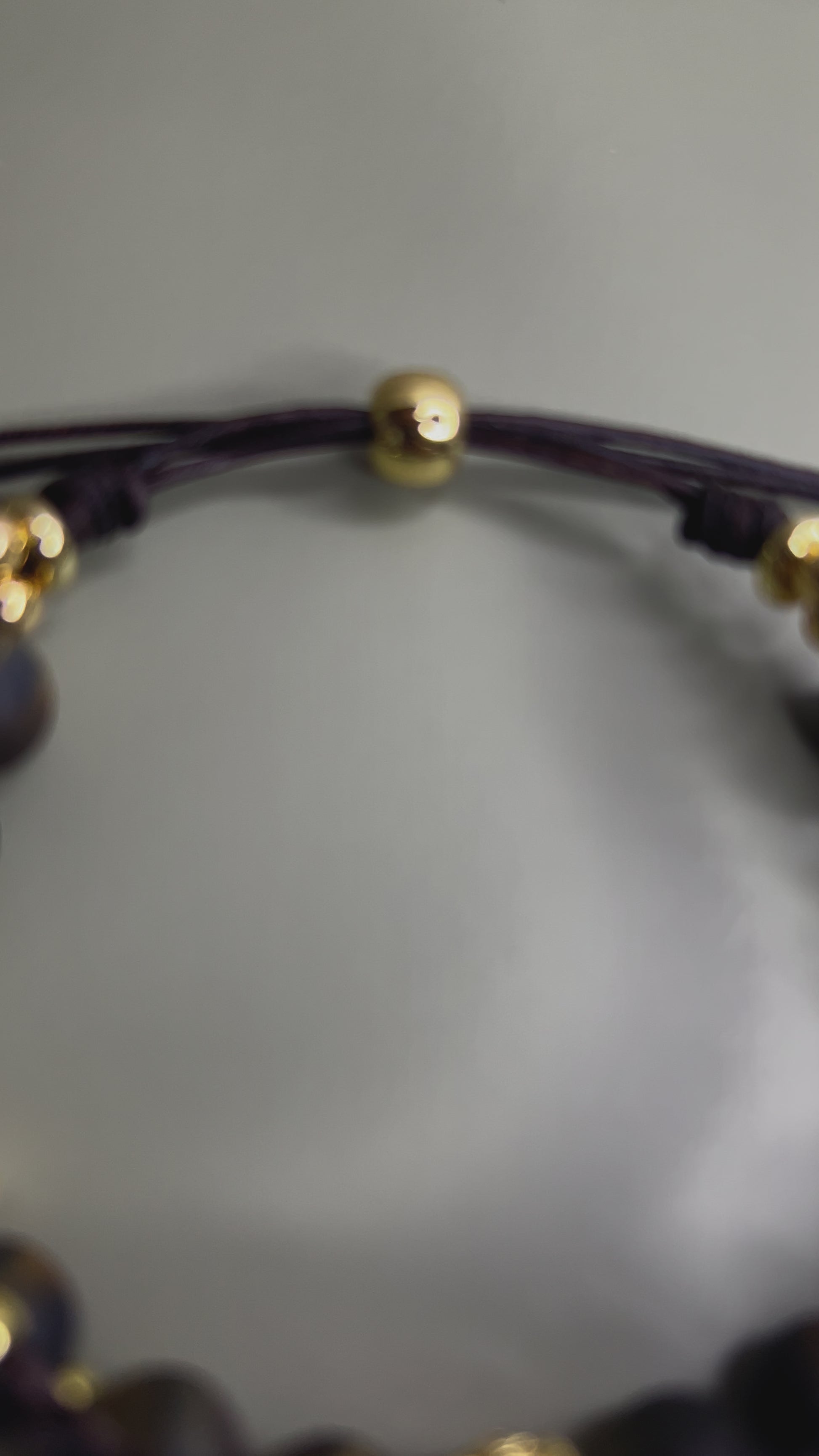 Embrace the strength and good luck of the Matte Tiger's Eye Bracelet. This magnificent 8mm tigers eye beaded bracelet boasts a double row macramé design, adorned with a 14k Gold plated cross and beads. Wear it with courage and experience the power of this symbol's inspiring energy.
