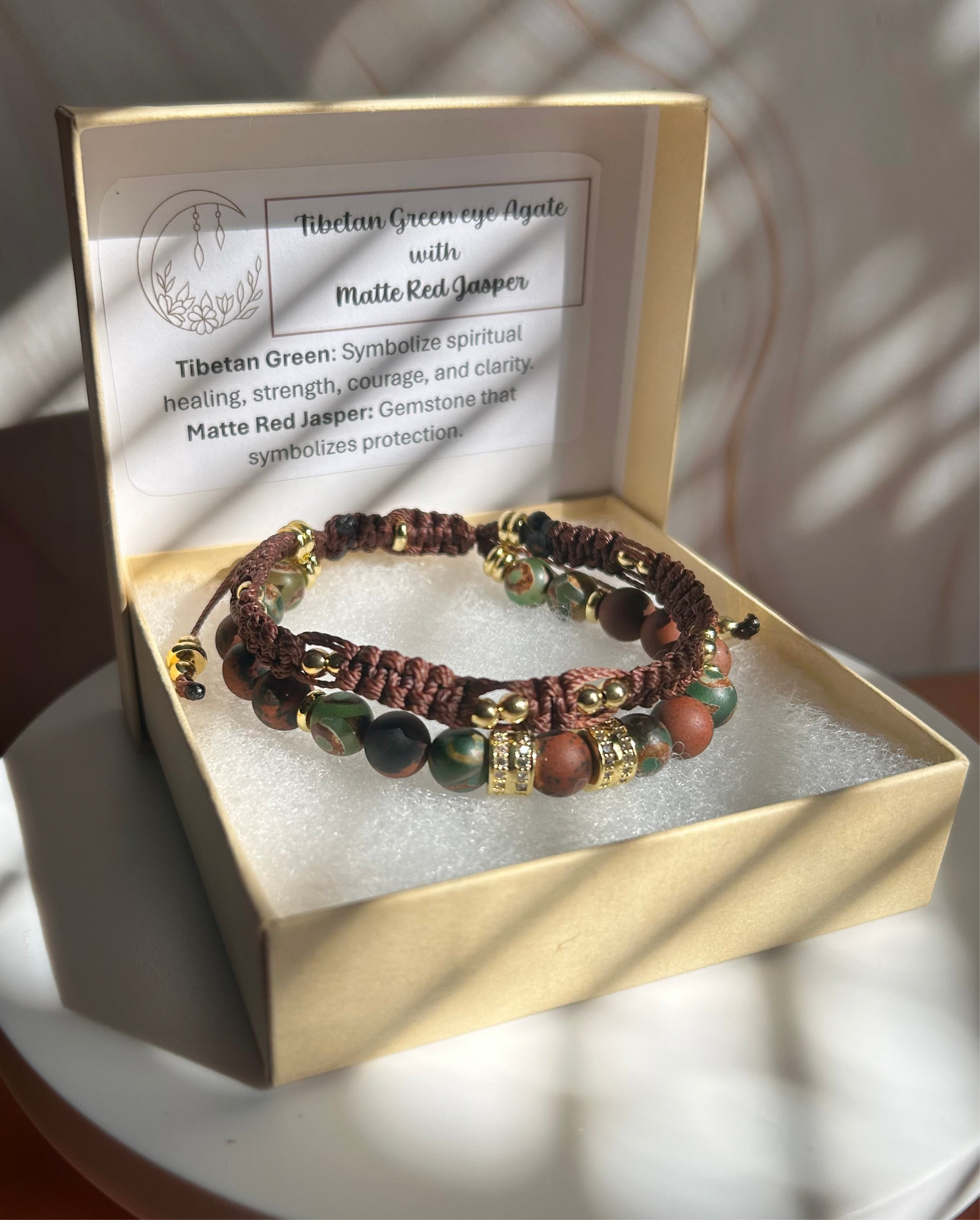 * Tibetan Jasper Red Jasper: Another beautiful stone, this variety enhances the overall aesthetic appeal of the bracelet.